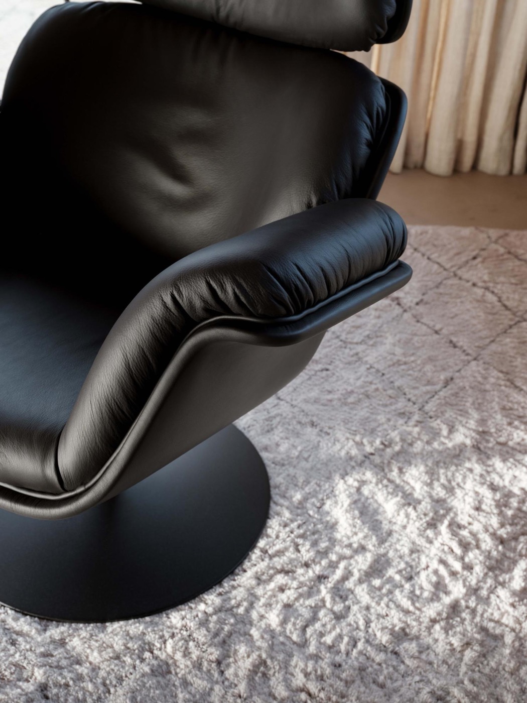 De Tulip F550 van Pierre Paulin is meer dan een fauteuil: het is een designstatement. Met zijn zachte, vloeiende lijnen – geïnspireerd door de elegante rondingen van een tulp – omarmt de sculpturale vorm je als vanzelf. De royale lagen schuim geven een gevoel van gewichtloze ontspanning, terwijl het iconische silhouet de ruimte direct karakter geeft.